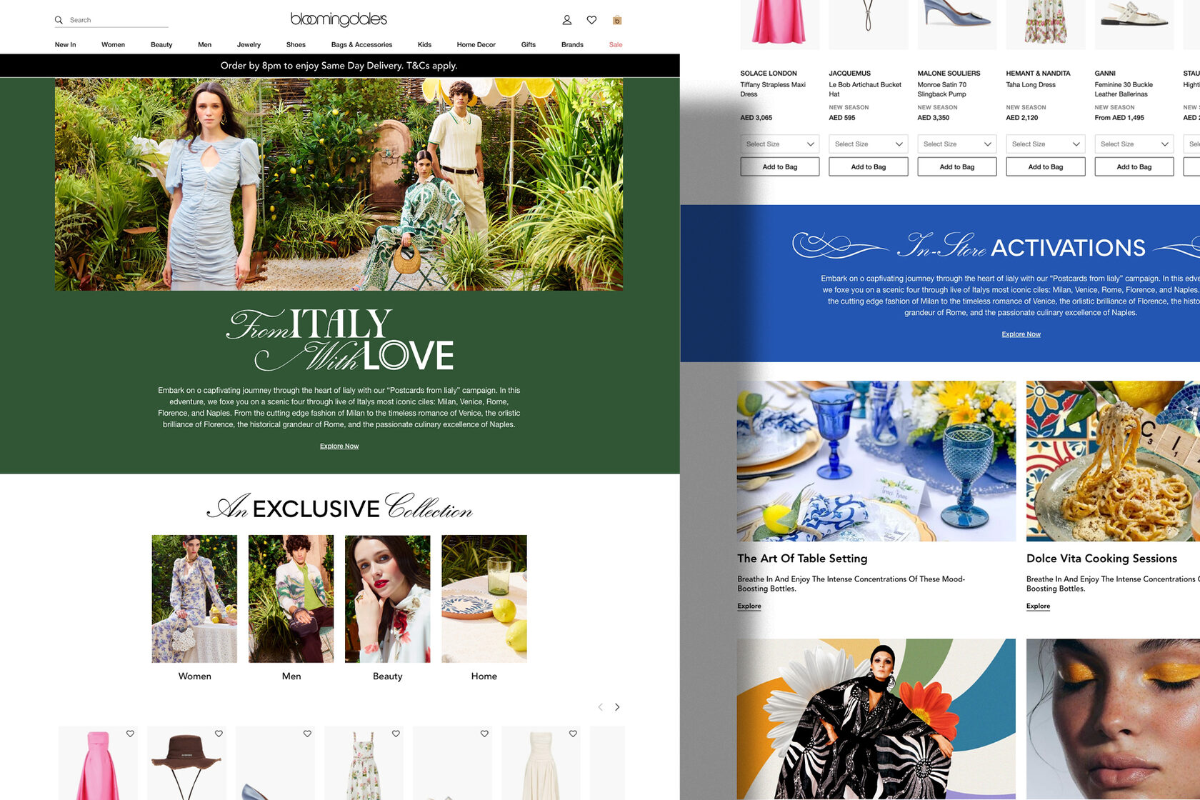 A seasonal campaign inspired by the spirit of Italian import fairs and the warmth of la dolce vita, bringing together luxury fashion, curated experiences, and immersive storytelling across digital and in-store touchpoints. The visual language balanced heritage references with contemporary elegance to create a vibrant retail narrative.