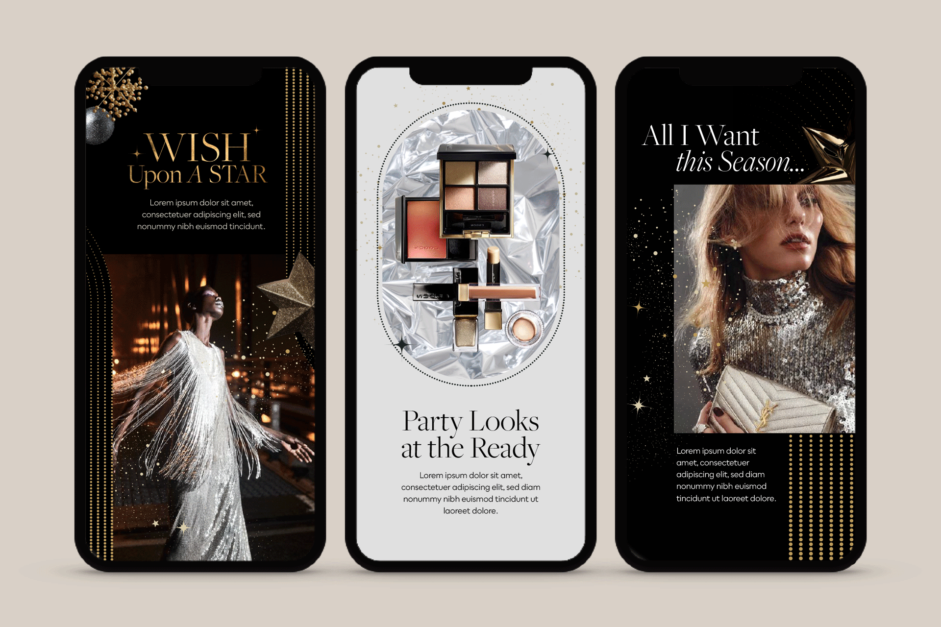 A festive identity built around the language of celebration, gifting, and seasonal anticipation. The visual direction combined softness, sparkle, and theatrical composition to create a world that felt aspirational while remaining commercially engaging.